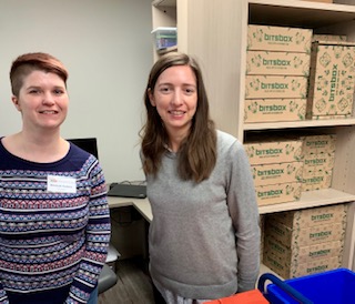 Monicah (one of our Bitsbox Ambassadors!) & Pati in front of the Bitsboxes that will be used for solar ovens this summer.